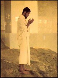 Day One - Pilgrims are easy to pick out, for by now they have showered and changed their street clothes for Hajj garments. For men, these consist of two lengths of white unstitched cotton cloth resembling beach towels. Women wear the usual forms of their national Muslim dress. The clothes are not intended as a means of identification. In fact, they make everyone look alike, which is the point: Everyone is leveled and stripped of obvious social distinctions before entering Mecca, just as everyone is equal before God.